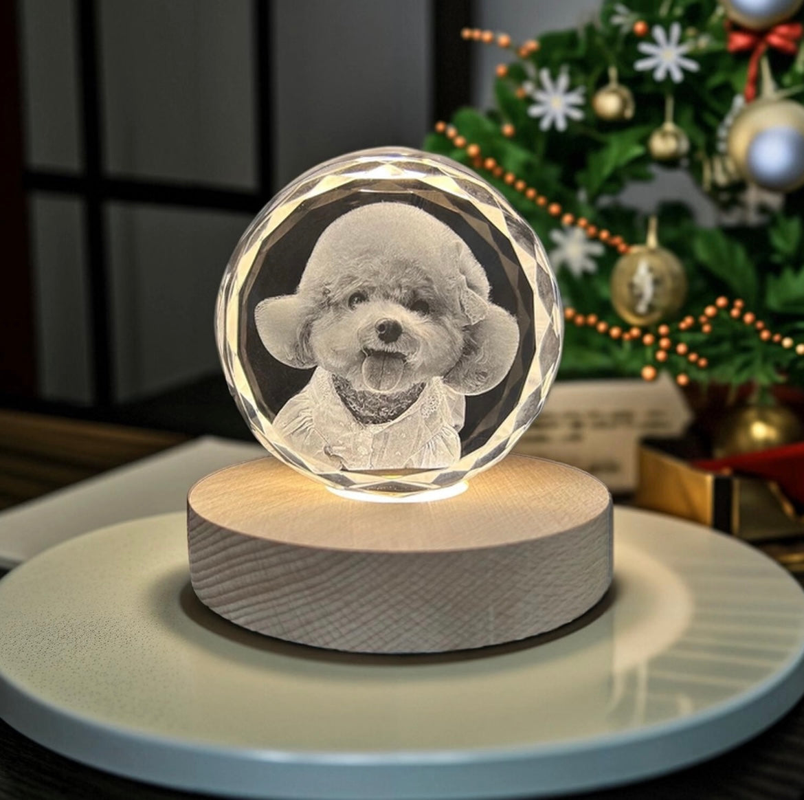 Personalisierte Haustier-Kristallgravur – Handgefertigtes Erinnerungsstück mit LED-Sockel